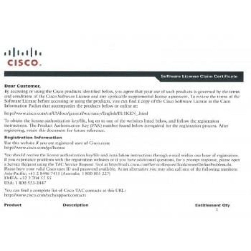 Сертификат на услугу SWSS UPGRADES CON-ECMU-LICDCT354
